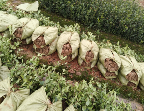 在这里还要向大家介绍的是大杯苗,杯体直径20公分,杯高15公分,每棵约10斤,该高产油茶苗地径粗壮、篷径大、当年种植、当年投产(见图4),效益相当明显,减少了林地管理时间,但它的价格和运输费用都很高,这也是大家十分关心的问题。